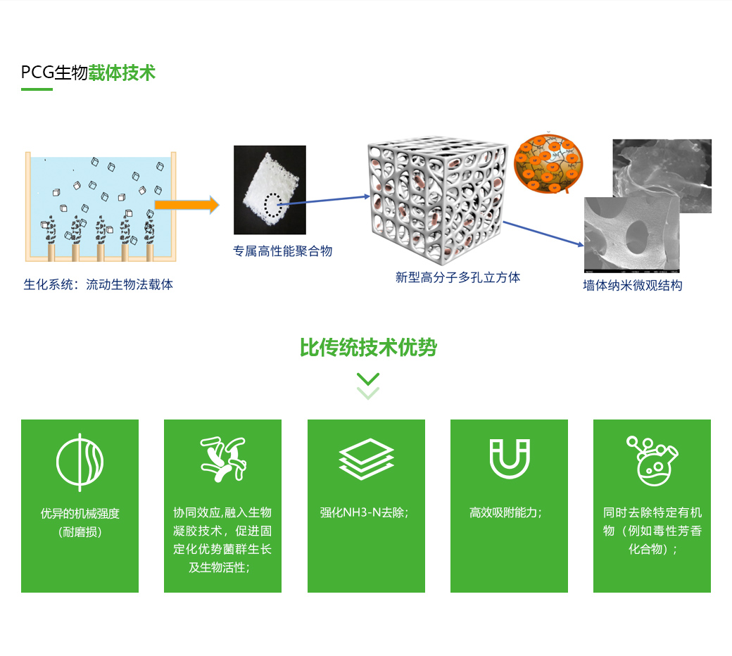 PCG是一種以高分子親水材料為基材的水處理生物載體產品,源自日本設計靈感,參考日本20年左右的應用經(jīng)歷。我司技術研發(fā)團隊從2010年開始對軟性生物載體進行開發(fā),經(jīng)過6年的設計與開發(fā),最終選擇以高親水性,生物親和性,抗磨損性,通氣性及強大的比表面積的高分子新材料作為生物載體的基材,并于2016年問世。歷經(jīng)5年的小試與中試試驗,最終于2020年投入規(guī)模化生產。作為生物載體,PCG領先于國內同類型產品。